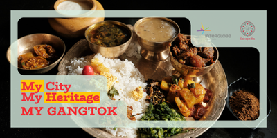 This booklet/curation invites you to explore Gangtok and Sikkim through multiple lenses: history and human geography, built form and social life, bodily practice and belief, craft and performance, taste and sound. Between Empire and Nation: A Historical Overview of Sikkim encapsulates Sikkim's journey as an independent kingdom under the Namgyal dynasty and the changing administration between the British Empire and the Indian nation state till its integration into India. The Peoples of Sikkim reflects on the diverse communities that animate the region, thinking through identity not as fixed categories but as lived and shared worlds. The Lores of Water: Rivers and Lakes of Sikkim explores natural heritage and its place in culture through folklore. Culinary traditions find expression in Sikkim’s Flavourful Kitchens: Grains on the Plate, reminding readers that foodways are vital sites of heritage.